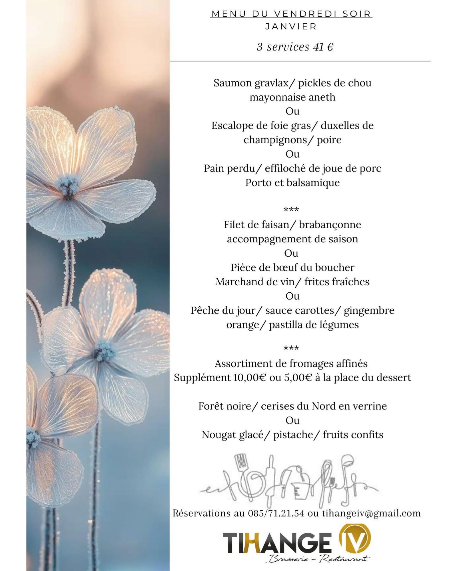Chaque vendredi soir, découvrez notre menu unique 3 services, imaginé par notre équipe avec des produits frais et de saison.